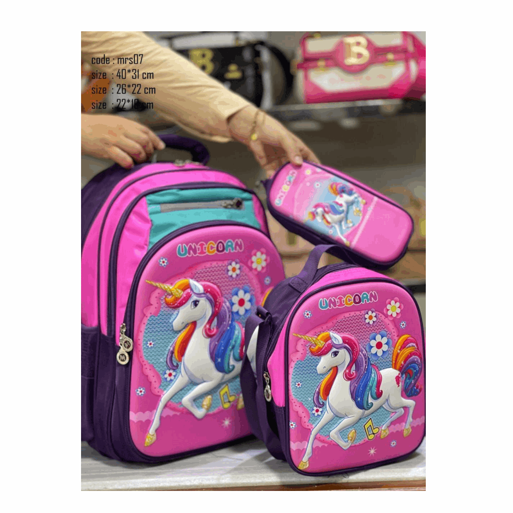 شنط مدارس شنطه طقم يونى كورن مقاس 18.5شكل صوفيا